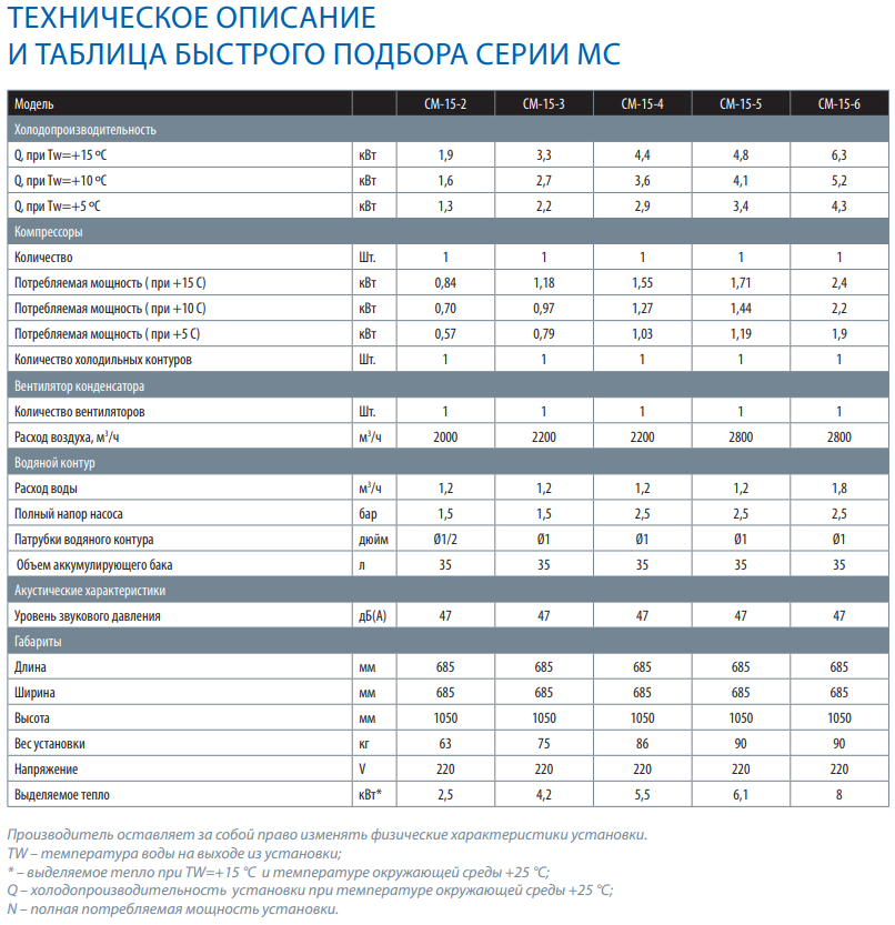 Основные особенности чиллера СМ-MC